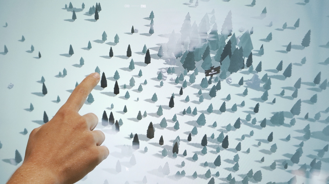 Interestingly, touch screen interactive needs to “say” that it can be interacted with. Why? Because it tends to remind some people of TV, which does not encourage people to try them out. Although a bit funny, this makes perfect sense as there is no physical difference between regular screens and touch screens. This is where you, dear designer, come in, it’s up to you to fix that. Various gesture icons within the UI or even the placement of the touchscreen can be of great help when indicating that screen is, in fact, interactive. For example, if we lay the screen at a 45° angle, this resembles a “control console” user might make use of.