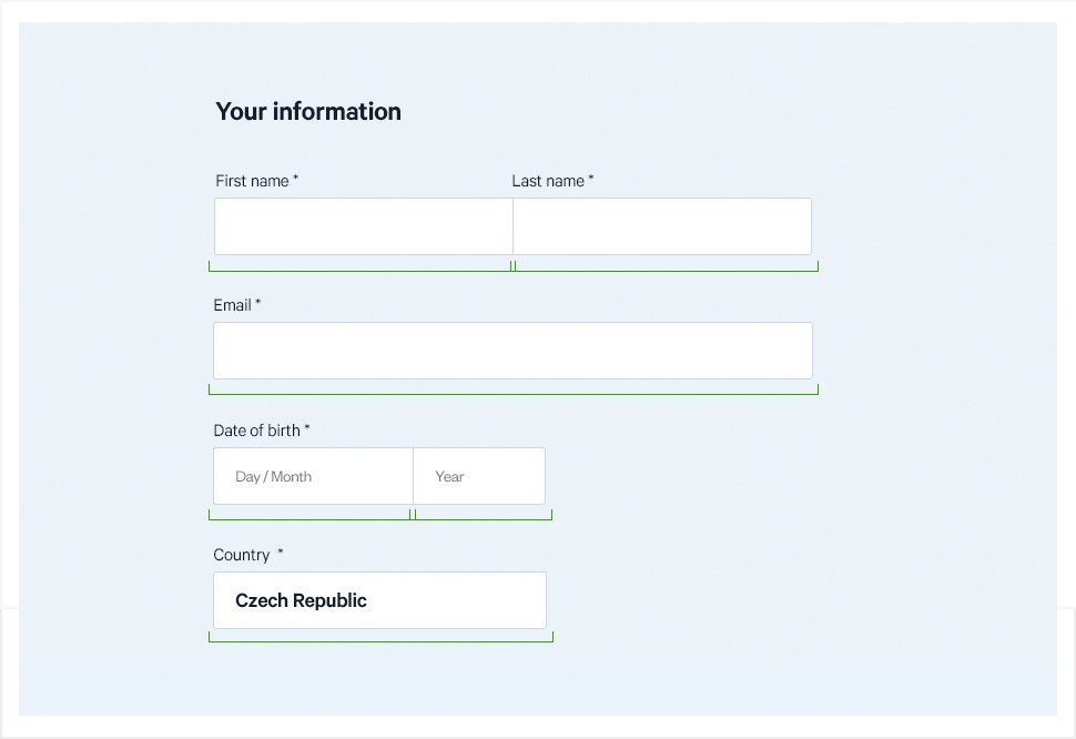 The most important thing to do in the form completion flow is to reduce the information burden away from users, while they are providing us with their inputs. There are several strategies used to align input fields, but here I’ll be addressing the benefits of input field organization—by their meaning.