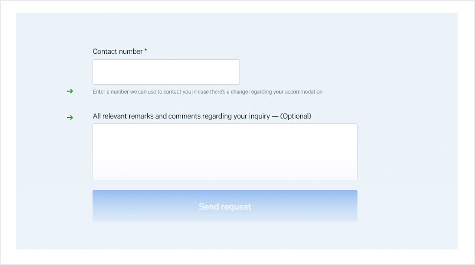 We split the form into two main parts (accommodation info and personal info) in order to provide more focus to the desired part.