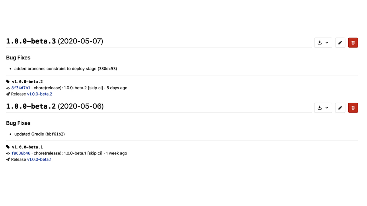 The same process repeats if we merge the staging branch to the master, except this time the version code will not have the -beta suffix and the created tag on the GitLab will be an actual release tag (as opposed to the pre-release tag from the staging branch).