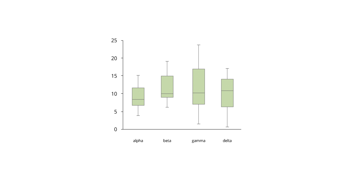 Box plots display a distribution of data across groups based on a five number summary — minimum, first quartile, median, third quartile and maximum.