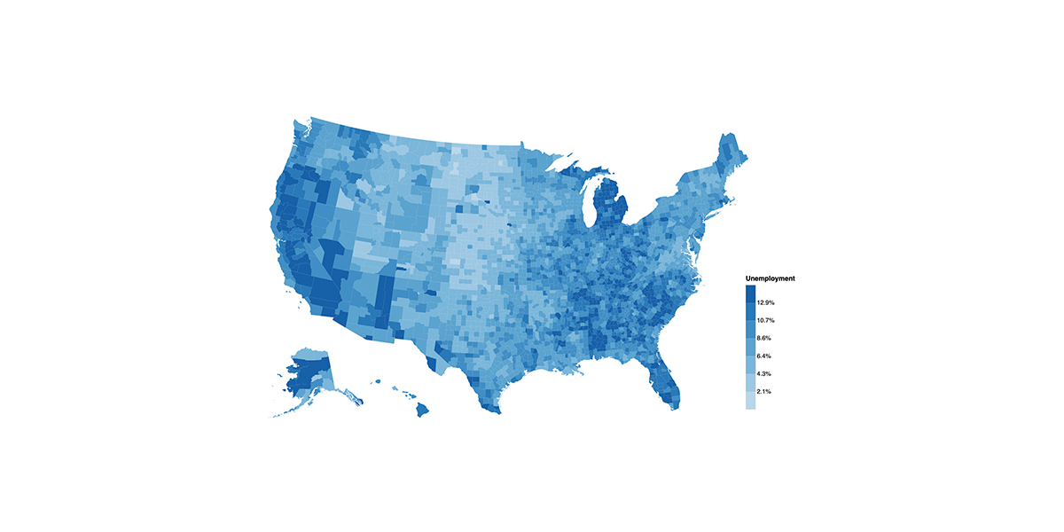 Heatmaps or choropleths show the relationship between two variables and provide a rating — this is displayed through various colors or color saturation.