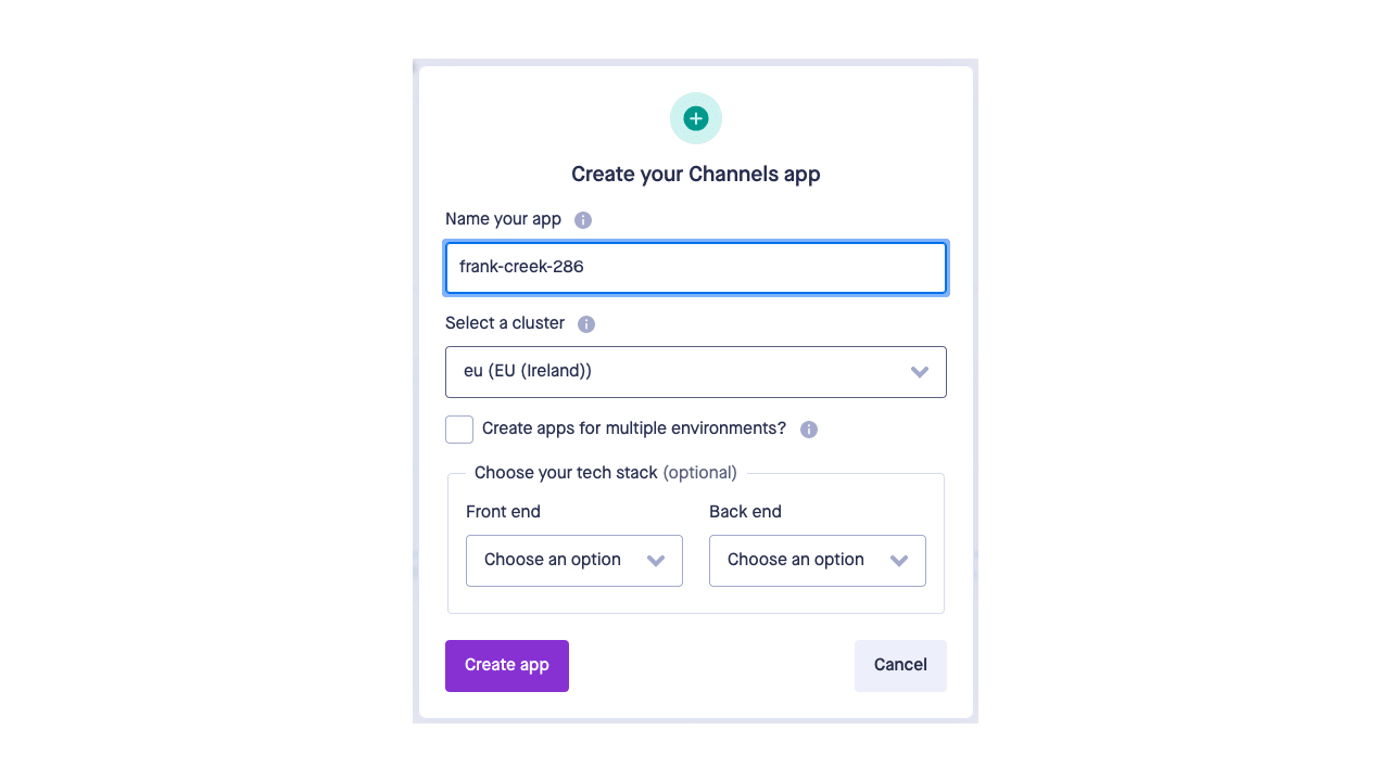 To follow this tutorial, you will need a free sandbox account which you can create here. After you have your account ready, from the channels dashboard you can create a new app.