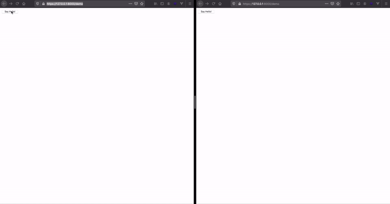 Your demo should be ready to go. Start Symfony built-in server with symfony server:start and navigate to /demo page with at least two browser windows or tabs. After clicking on the button, you should get an alert on all opened tabs.