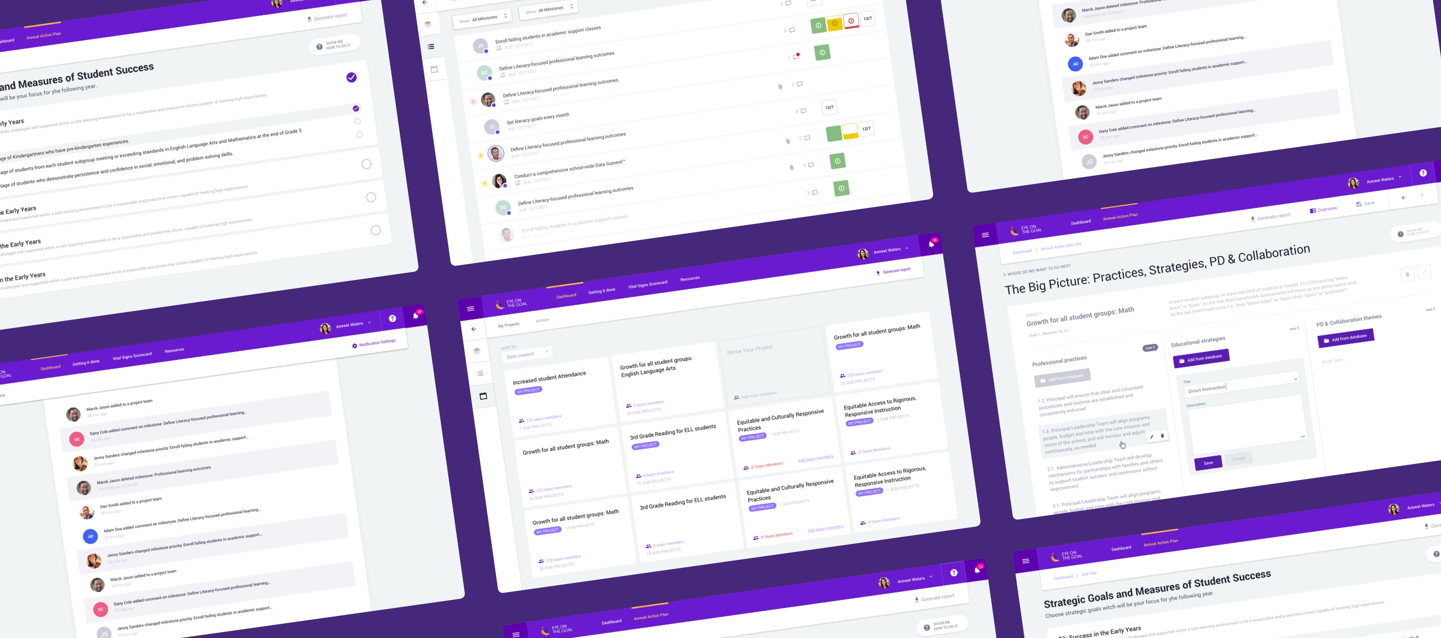 An example of a cloud-based enterprise software is Eye on the Goal, a digital product we’ve built for our client Performance Fact. Being in the consulting industry, but in a specific niche of building long-term development strategies for educational districts in the USA, our clients noticed that their strategies are not implemented or are slowly implemented due to the lack of guidance.