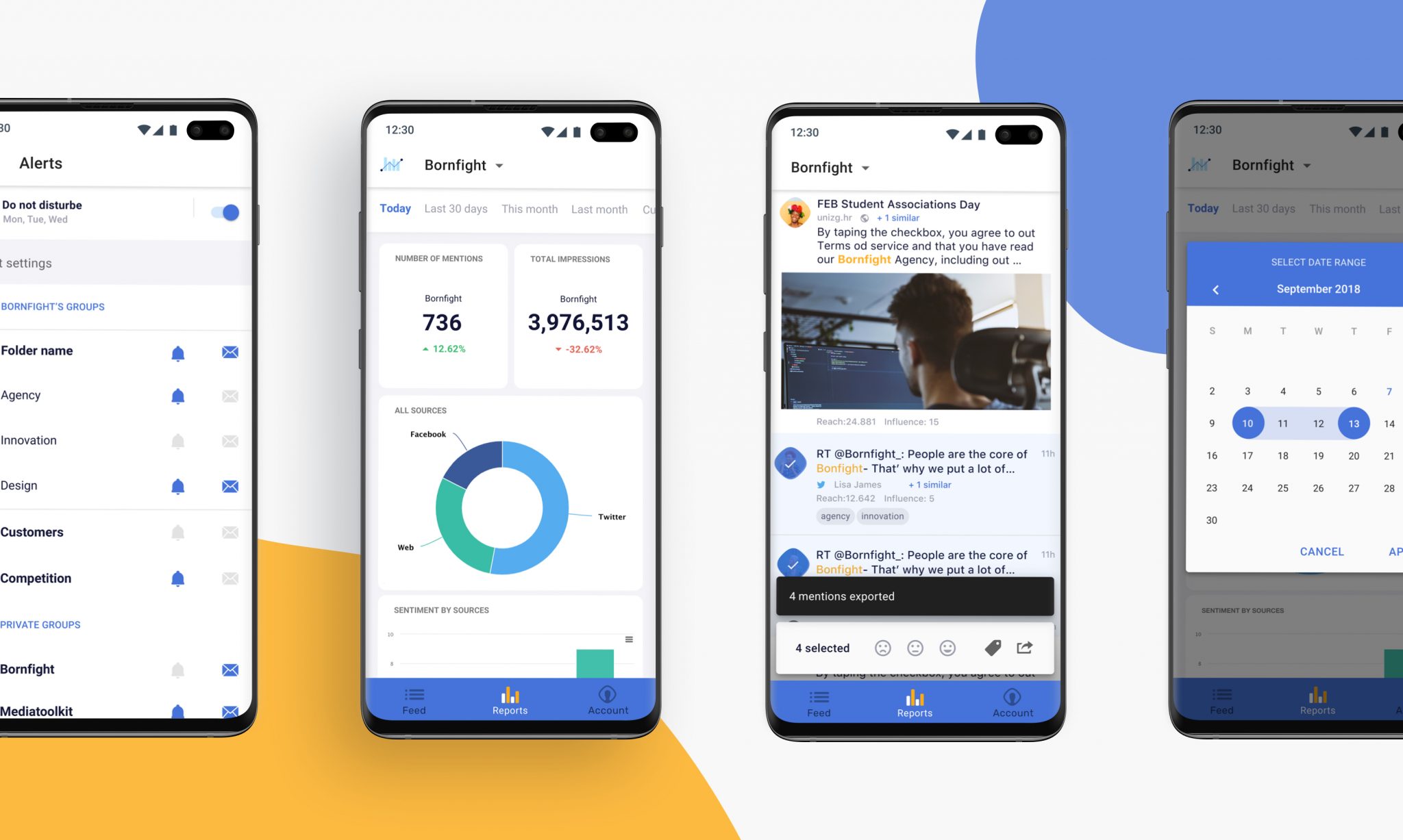 The mobile application needed to compliment the Mediatoolkit web tool by adapting to different workflows of its users, so we enabled them to customize certain aspects of app itself – from core actions like setting up keywords and queries, all the way to defining how they’d like to receive notifications or times when the app shouldn’t disturb them.